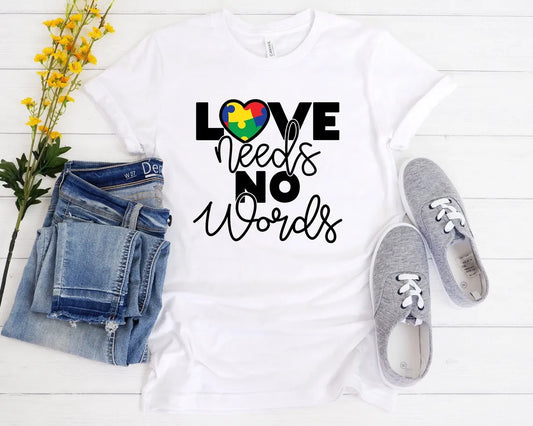 Love Needs No Words Letter Print Tshirt Women Clothes 2024 Autism Mom Hero T Shirt Femme Mom Gift T-Shirt Female Summer Tops