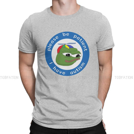 Pe Pe Green Frog TShirt for Men Please Be Patient Autism Humor Summer Sweatshirts T Shirt High Quality New Design Loose