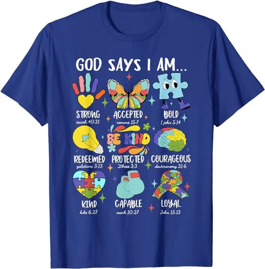 God Says I Am Be Kind Autism Awareness SPED Women Men Kids T-Shirt Autism Spectrum Clothes Humor Funny Graphic Tee Fashion Tops