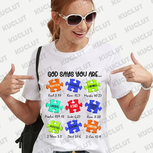 God Says I Am Autism Shirts for Women Clothing Be Kind Retro T-shirts Harajuku Graphic Clothing Jesus Autism Women's Tops