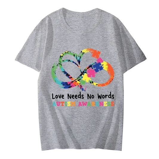 Fashion T-shirt for Women Kids Tops Love Needs No Words Print Women's Clothing Casual Autism Awareness Kawaii Tees Y2k Clothes