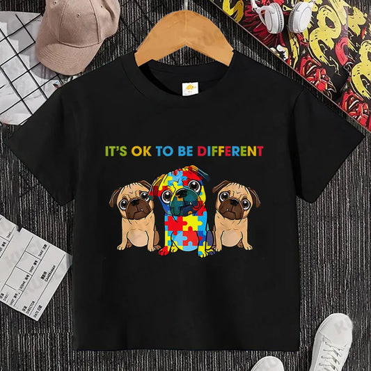 It's Ok To Be Different Print T-shirt Autism Awareness Shirt Dinosure T Shirt Autism Top Puzzle Piece Autism Gifts for Youth Kid