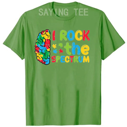 Autism Brain I Rock The Spectrum Awareness Boys Girls Kids T-Shirt Puzzle Blue Ribbon Rainbow Infinity Outfit Saying Tee Gifts