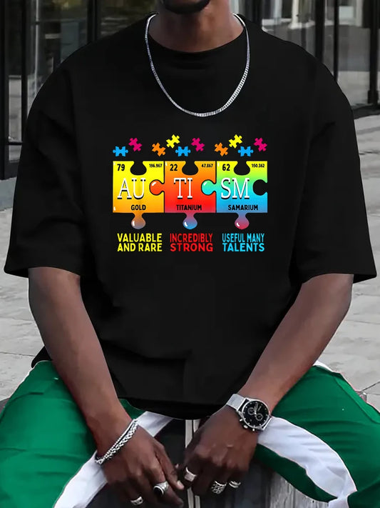 Autism Awareness Print Men Tshirt Casual Fashion T-Shirts Soft Fashion Tees Clothing Harajuku Men's Streetwear Y2k Graphic Tops