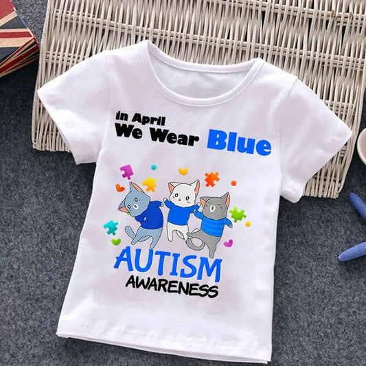 Autism Kids Boy T-Shirt Girls Cartoon Puzzle Tops Cute Baby Cotton Summer Clothes Toddler Dinosaur T Shirts Children