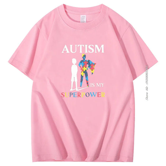Autism Is My Super Power Puzzle Piece Cotton Funny men's short sleeve t-shirt Autism Graphic Tee Summer Men's clothing