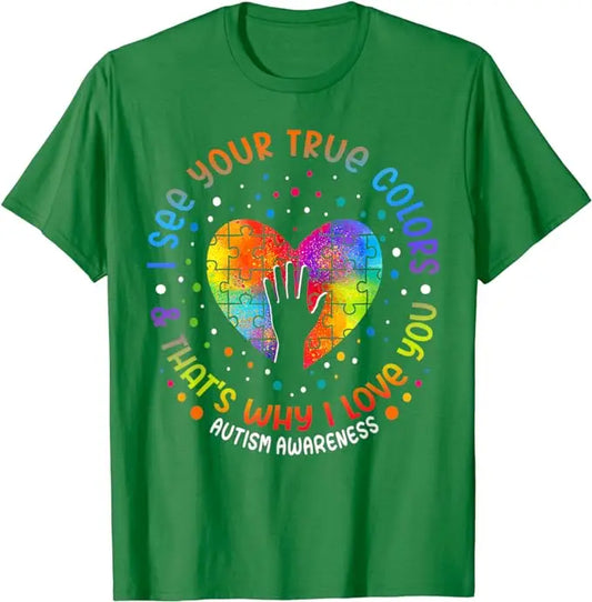 I See Your True Colors Puzzle World Autism Awareness Month T-Shirt Autism Child Mom Outfits Cute Be Kind Saying Tee Tops Gifts