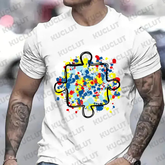 Men's T-Shirt Autism Awareness Puzzle Piece Print Male Tshirt Casual Fashion Soft Fashion Tees Clothing Harajuku Graphic Tops