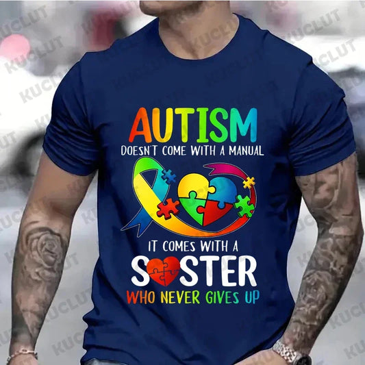 T Shirt for Men Summer Tops Autism Spectrum Tshirts O-neck Men Clothing Autism Awareness Men Tee Shirts Plus Size Male Clothes
