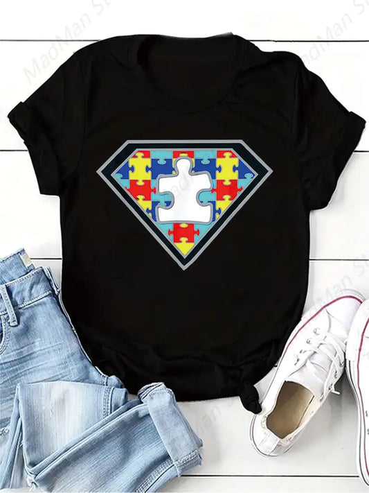 Women Autism Awareness T-shirt 2024 Fashion Print Y2k Graphic Tops Short Sleeve Tees Harajuku Oversized Autism Mom Streetwear