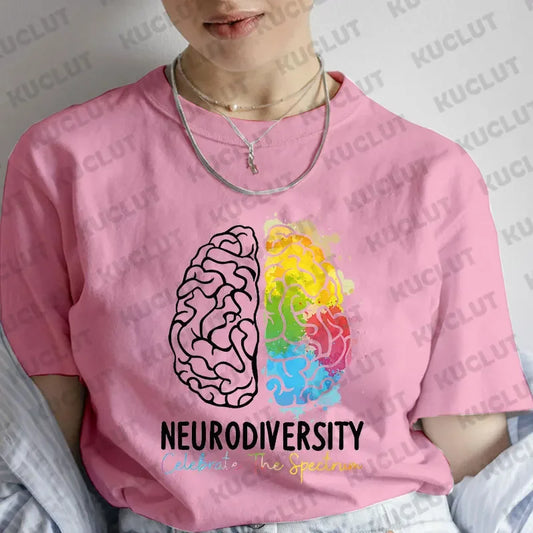 Women Clothing Embrace Neurodiversity Celebrate The Spectrum Brain Autism T-Shirt Short Sleeve Tees Fashion Y2k Graphic Tops