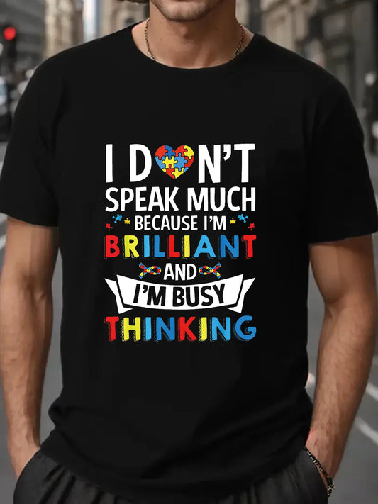 I Don't Speak Much Because I'm Brilliant Autism Shirt Man Tops New Men T shirt Cotton Print Tee Tops Fashion Clothing