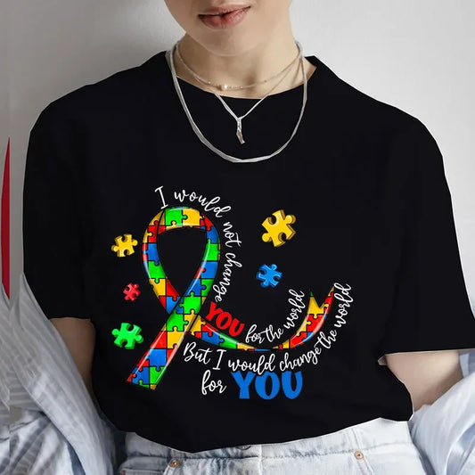 Women Clothes Autism Awareness Puzzle T-shirt Y2k Graphic Autism Mom Print Tops Fashion Short Sleeve Tees Female Clothing