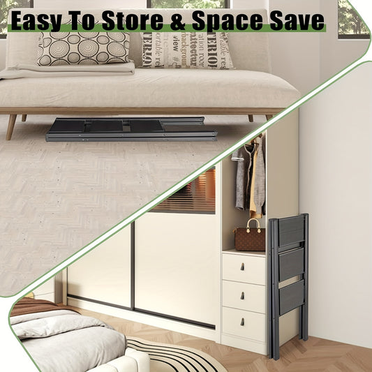 3 Step Ladder Aluminum Light Folding Step Bench Wide Non slip Pedal 300 lb Capacity Home Office Portable Ladder black