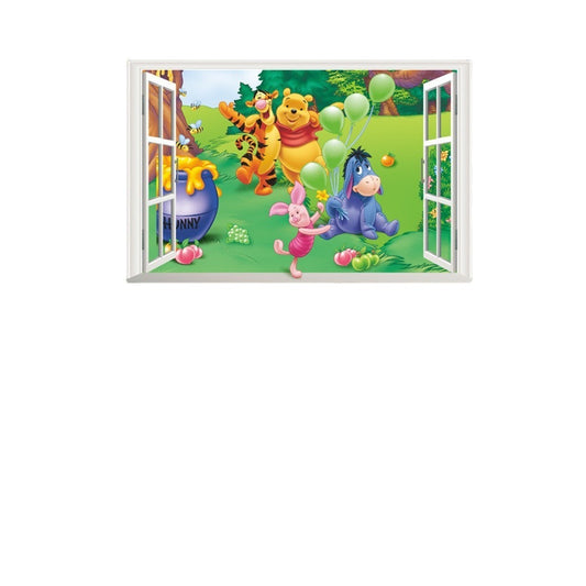 Cartoon teddy bear fake window, children's room, bedroom decoration, removable waterproof wall sticker